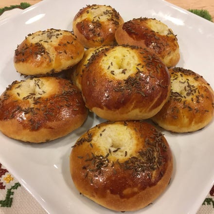 Made with flour, butter, sugar, kefir, eggs, yeast, caraway seed, salt