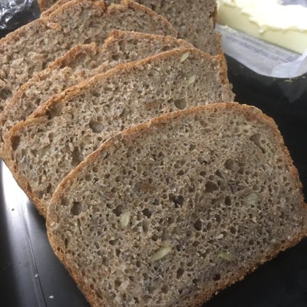 Made with rye flour, spelt flour, bread flour, sunflower seed, pumpkin seed, flax seed, chia seed, sesame seed, sugar, baking ferment, salt, yeast